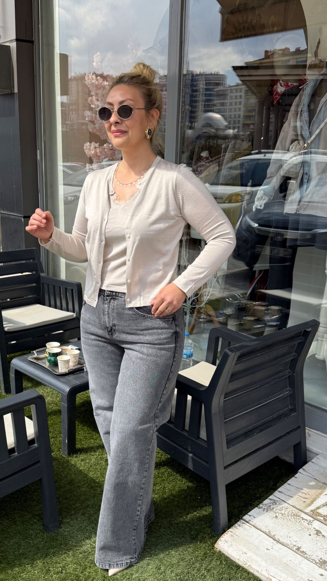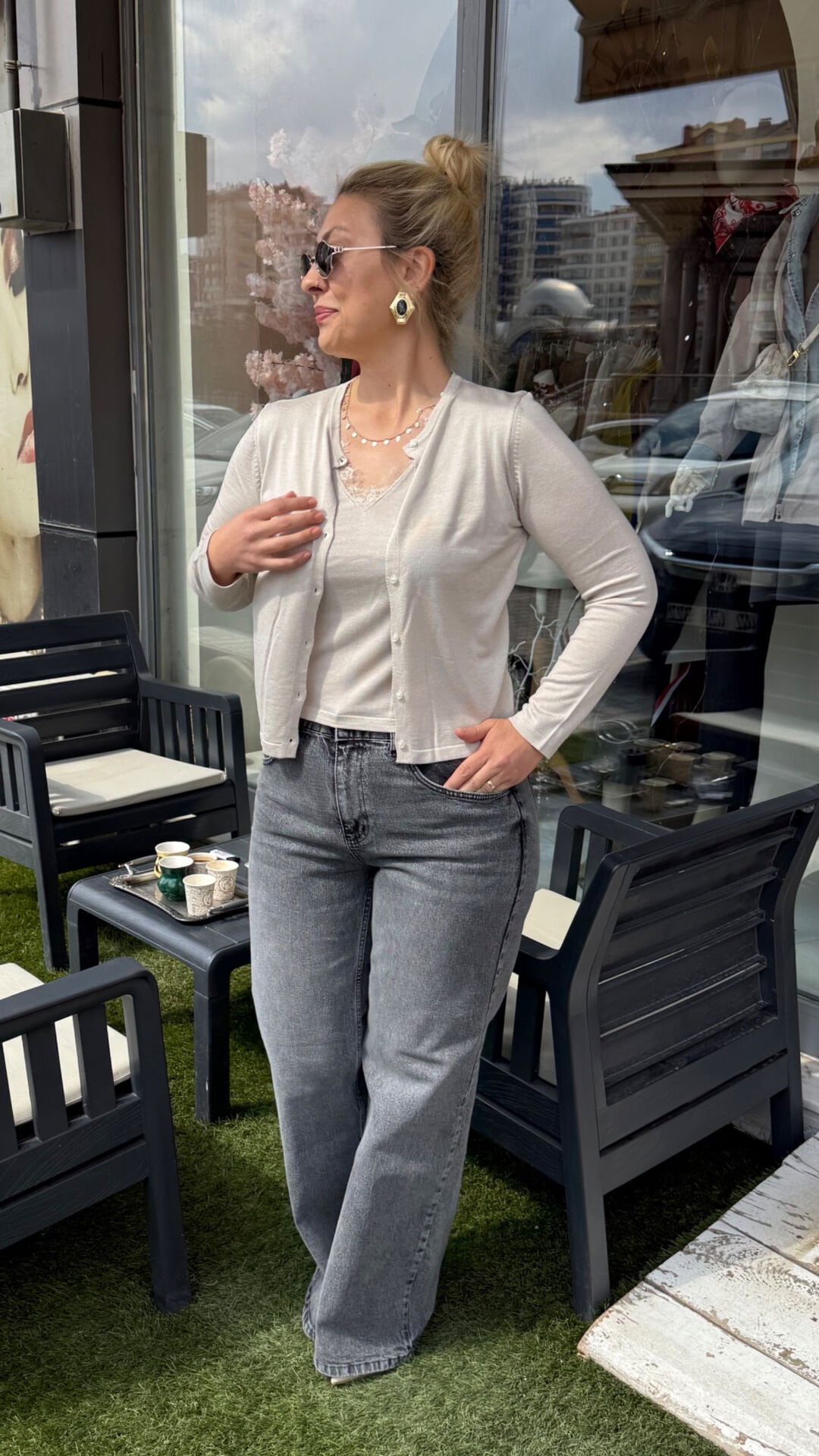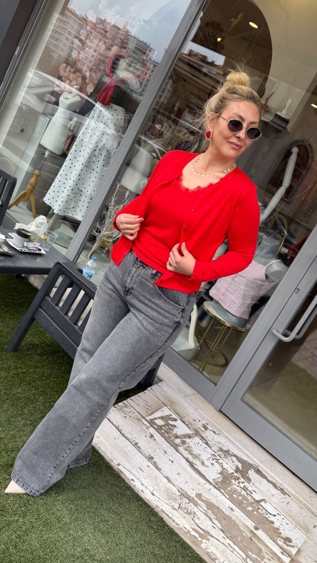 • İç bluz ve hırka görünümünde şık birleşik tasarım