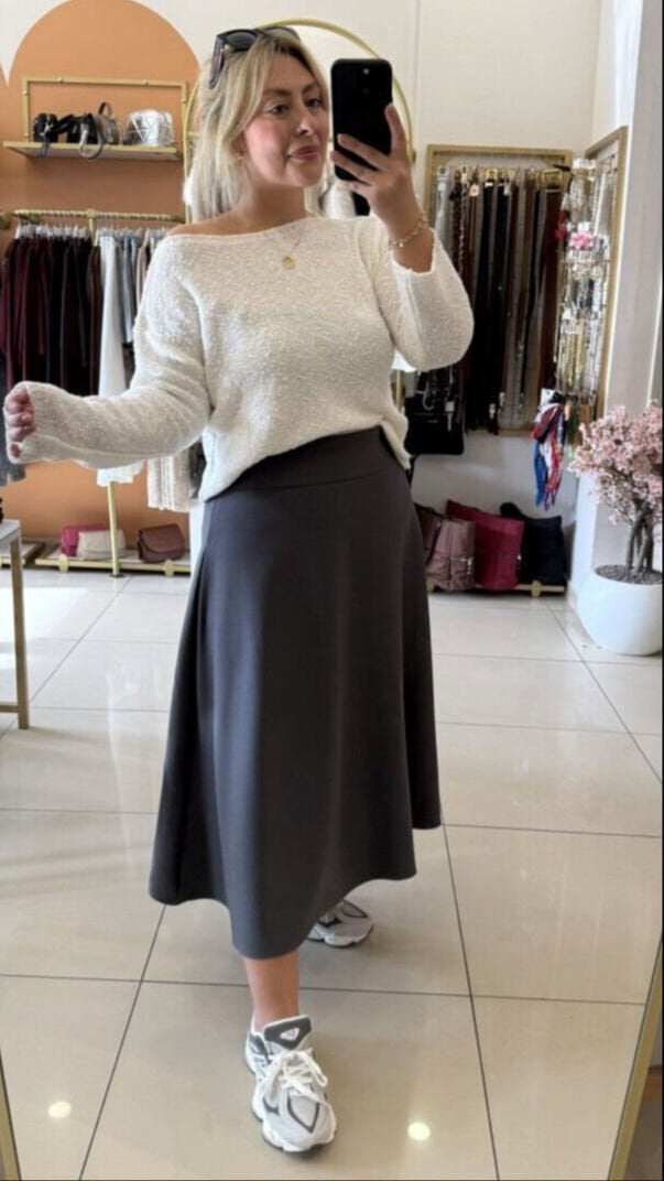 Diagonal Kumaş Gri Çan Etek