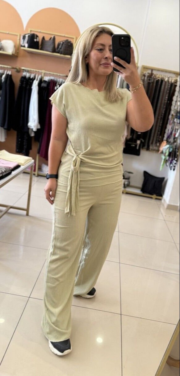 Mint Yeşili Yandan Bağlama Detay İkili Takım