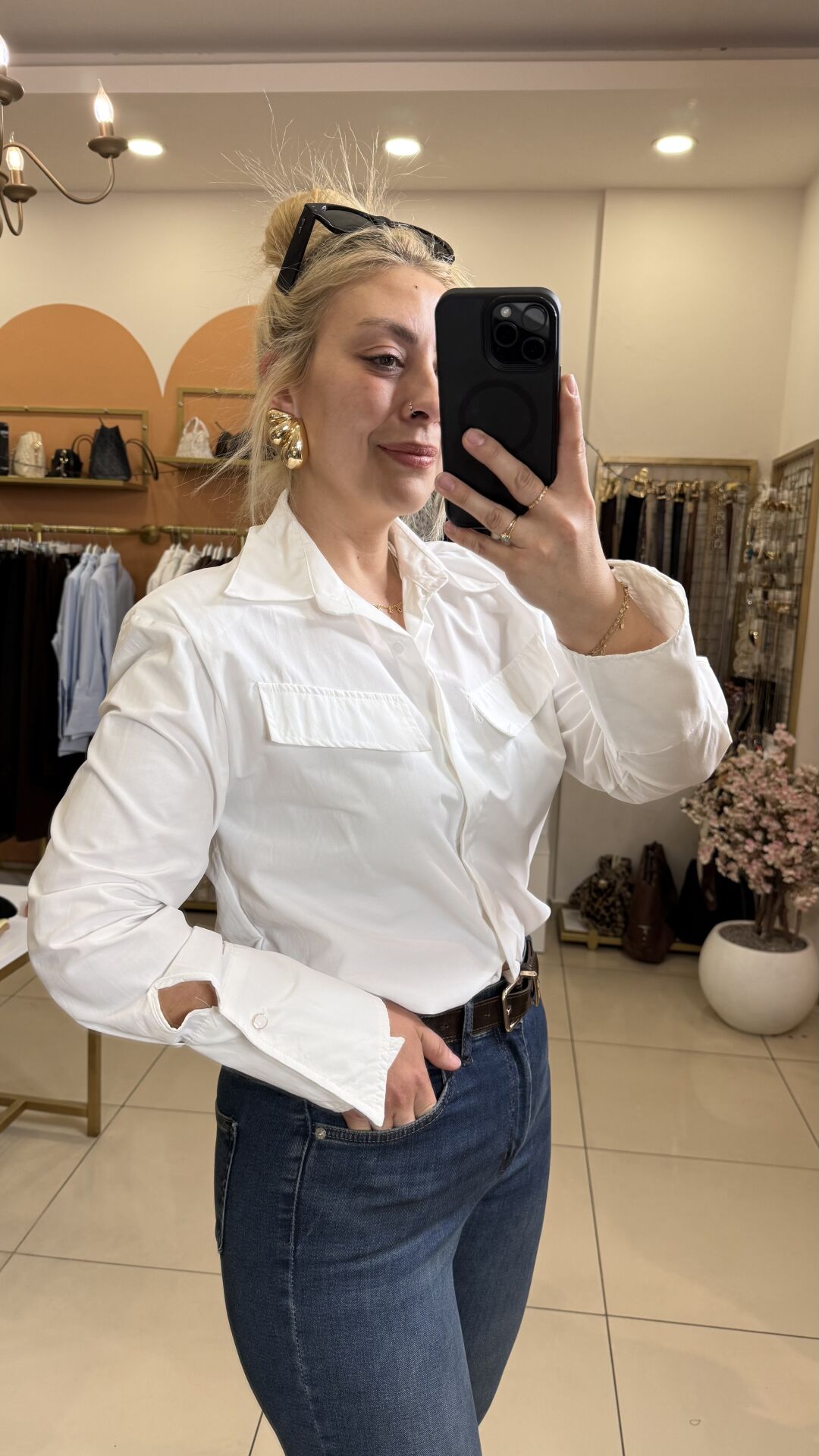 Zamanın Ötesinde Bir Stil: Vatkalı ve Geniş Manşetli Beyaz Gömlek