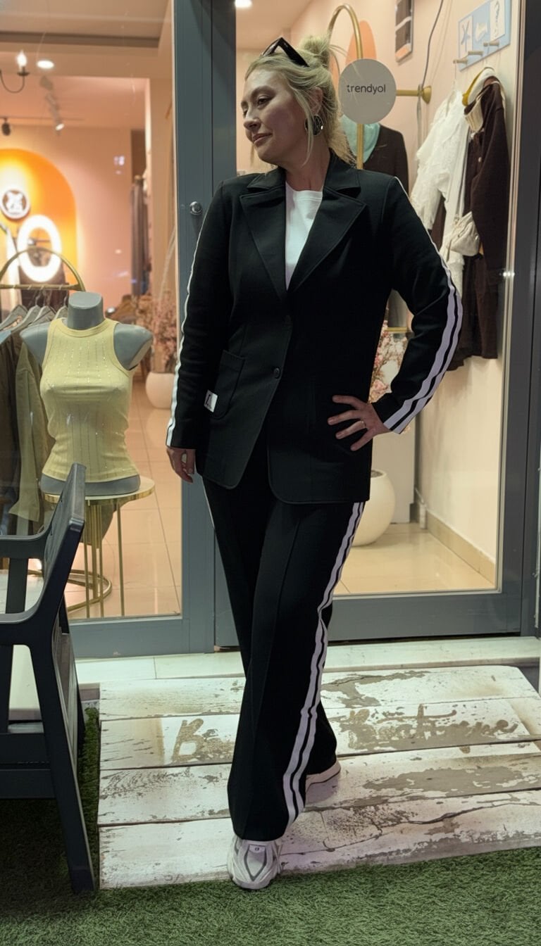 Spor Yan Şeritli Blazer Ceket Pantolon Takım