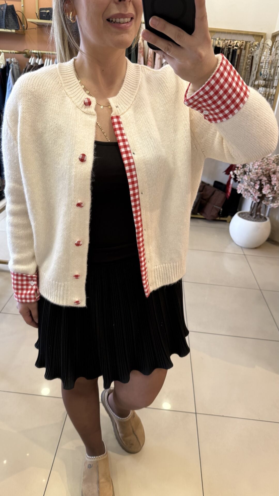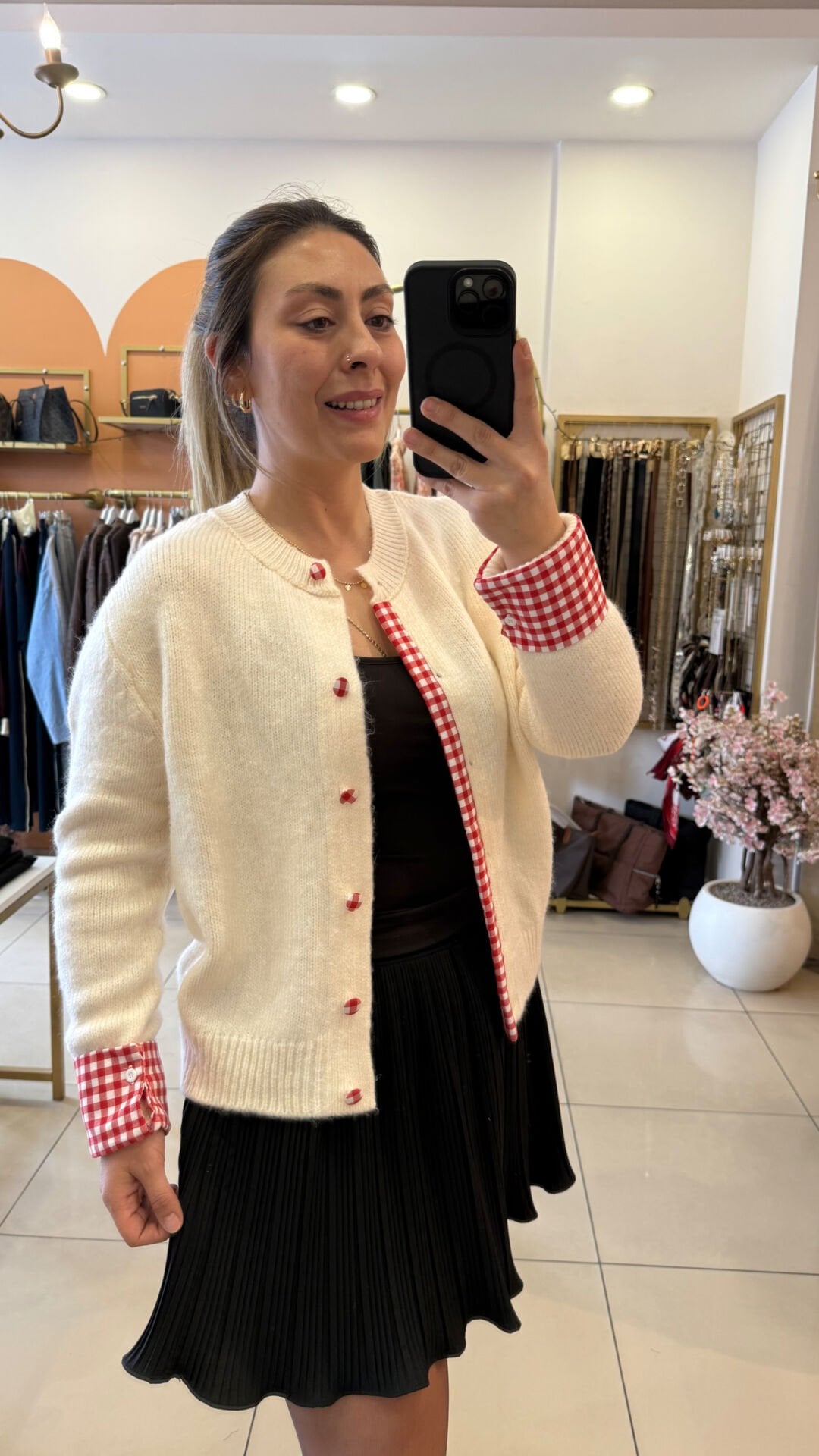 Tasarım Kırmızı Pötikare Detay Hırka