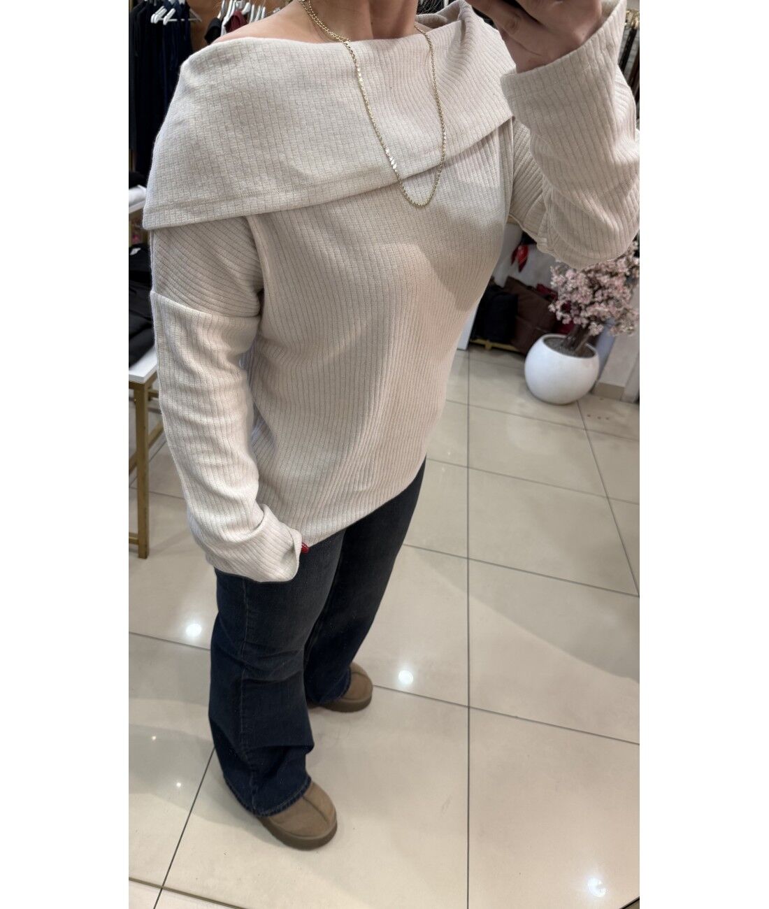 Yumoş Dokulu Madonna Yaka Bluz-Krem
